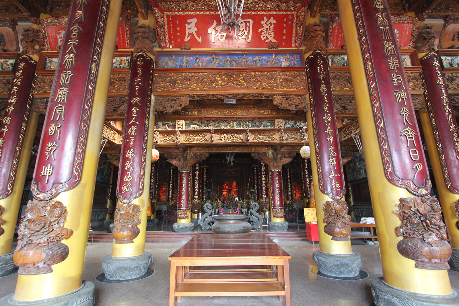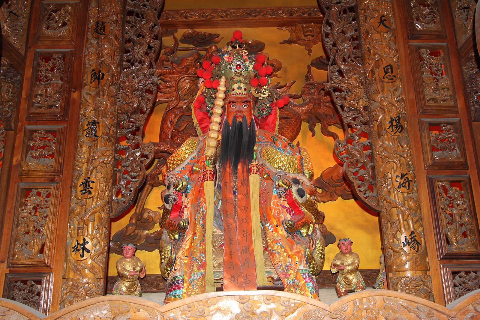 總幹事兼會計黃秋林,在本宮無薪服務長達卅二年之久,熱心公益、為本宮貢獻良多,功莫可滅。本村善信林水木放棄私人工作,專心為本宮始終無價奉獻綁鐵工作,為本宮節省近百萬工資,又熱心捐款助建。本宮總面積一千一百八十三坪,建坪三百七十六坪重建完成廟宇巍峨,神威赫濯、神恩廣濟、弘道揚善、護國佑民,爐下善信大德皆以虔誠之心感恩參拜,更應薪火傳遞,以示後代,爰記沿革於上,以昭永垂。